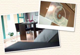 客廳中的一道牆身貼上了大圓形圖案,像一個個攝人的鏡頭,紀錄生活上的零碎片段。